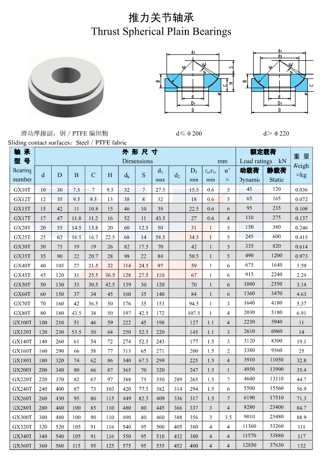 Trust spherical plain bearings