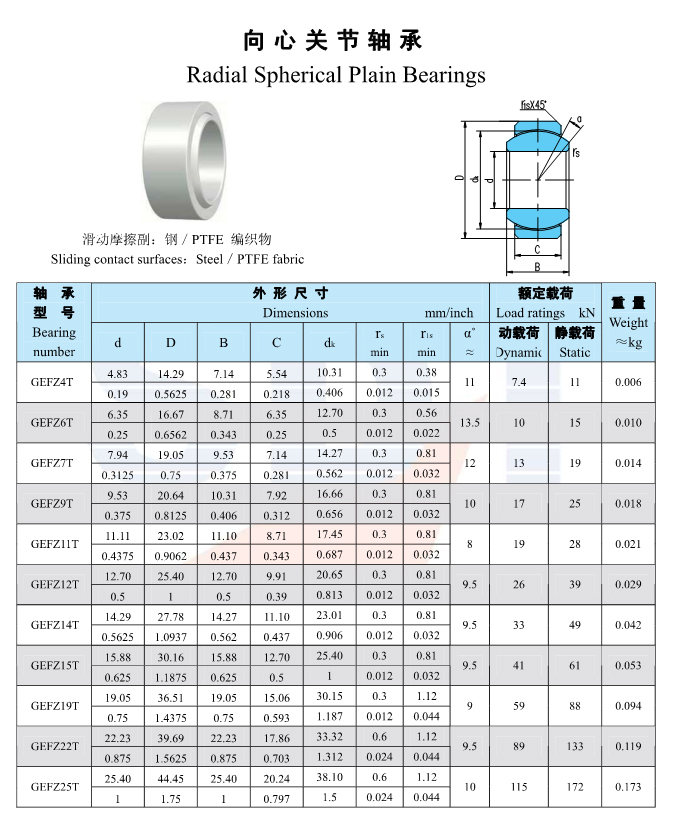 radial spherical plain bearings