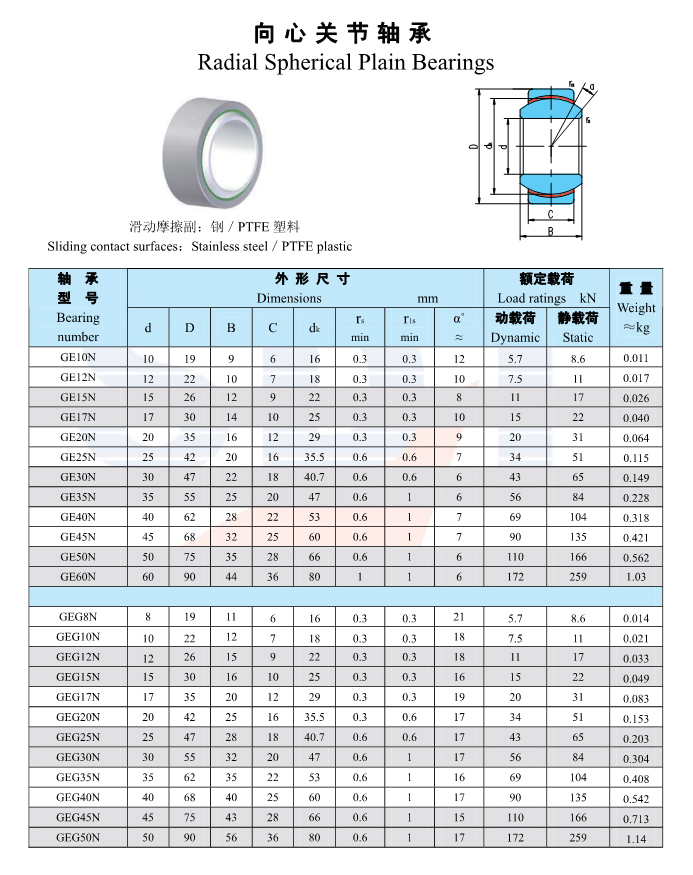 radial spherical plain bearings