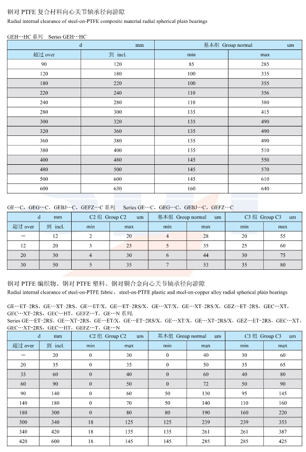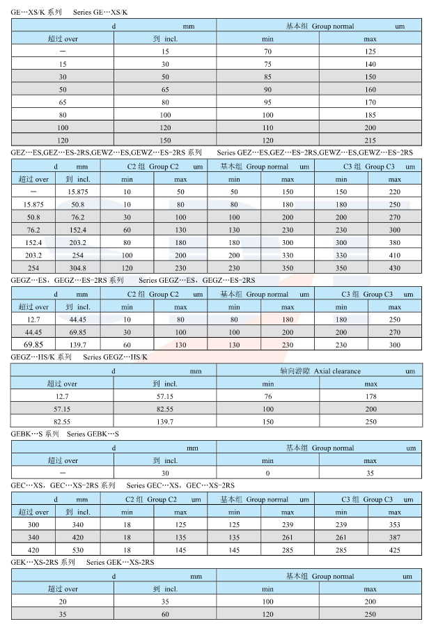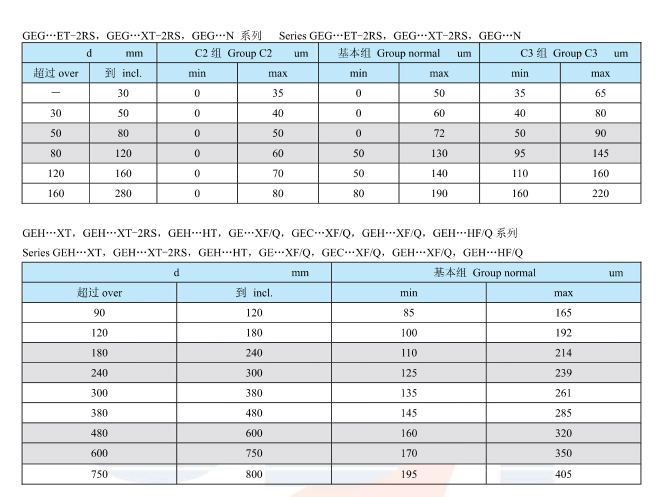 向心关节轴承径向游隙